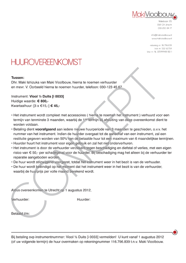 Bij het afhalen van het instrument wordt een huurovereenkomst gesloten en wordt het eerste kwartaal